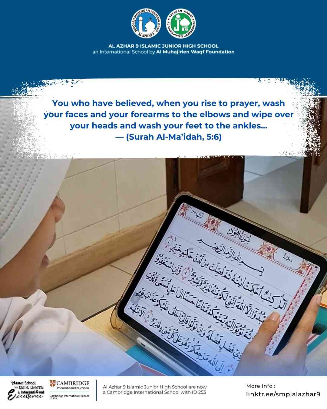 Today, students of SMP Islam Al Azhar 9 studied the steps of wudu to better understand purification according to the Sunnah of the Prophet ﷺ. 🤲