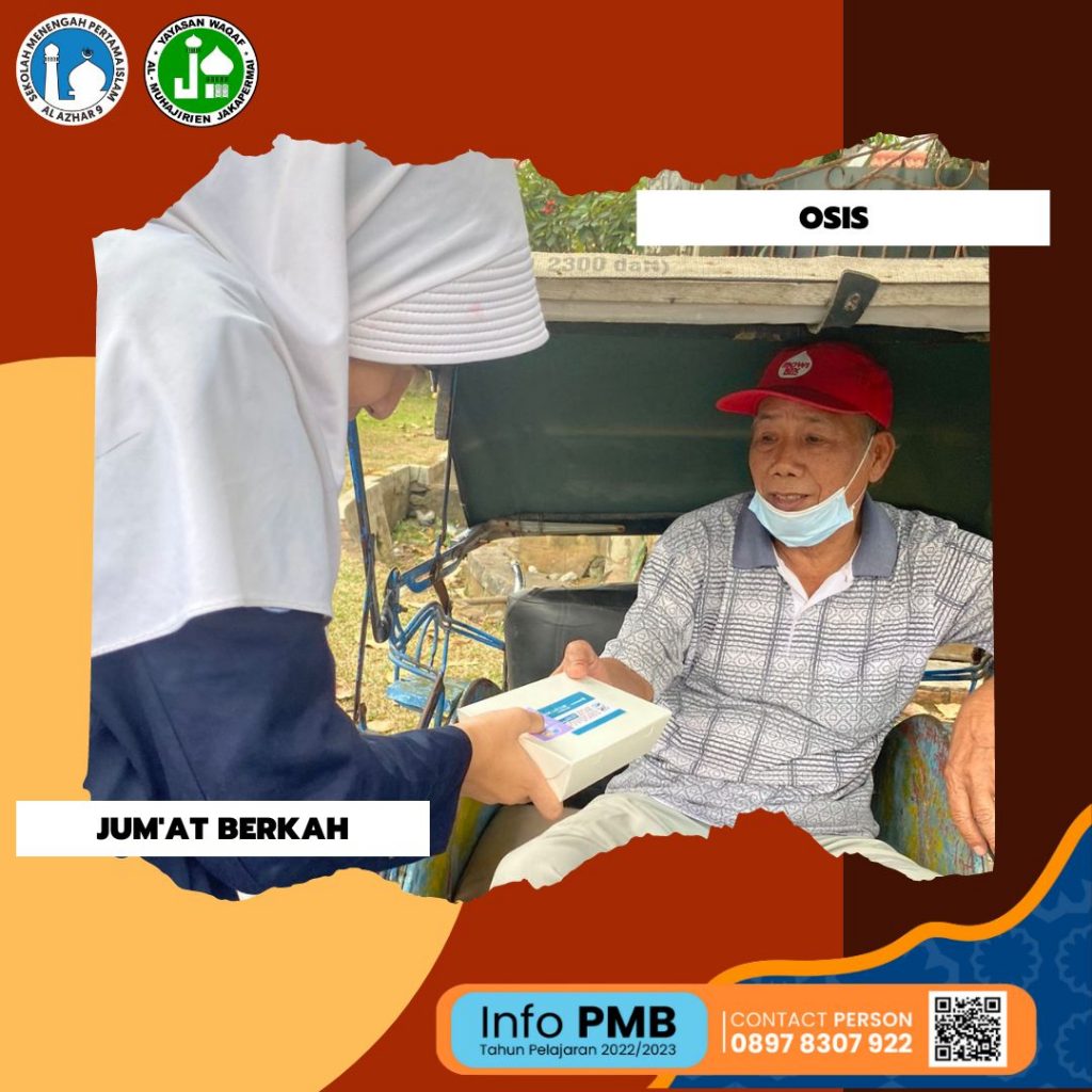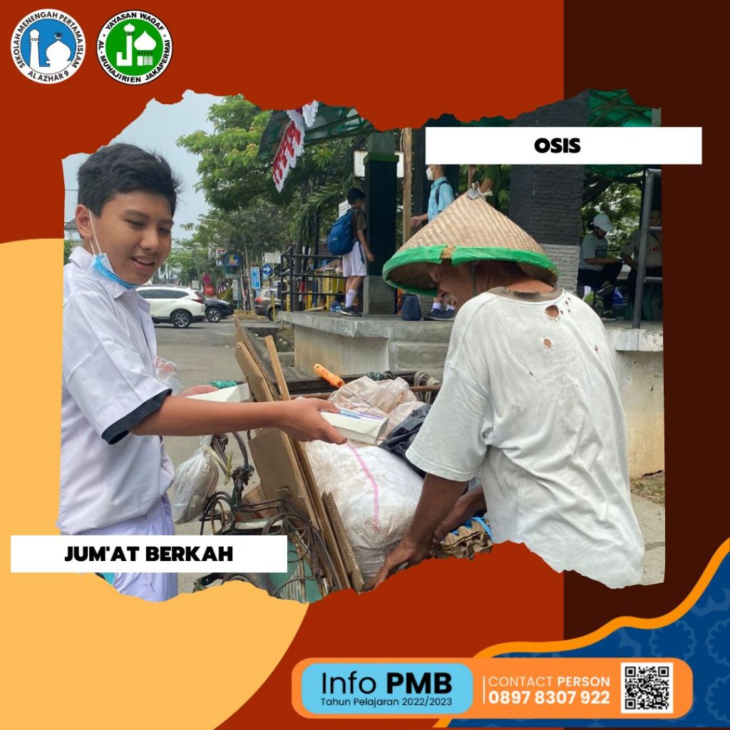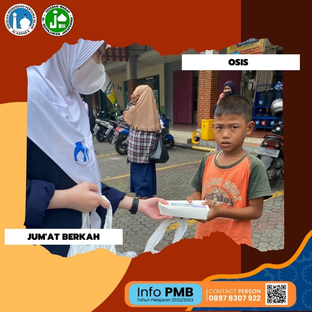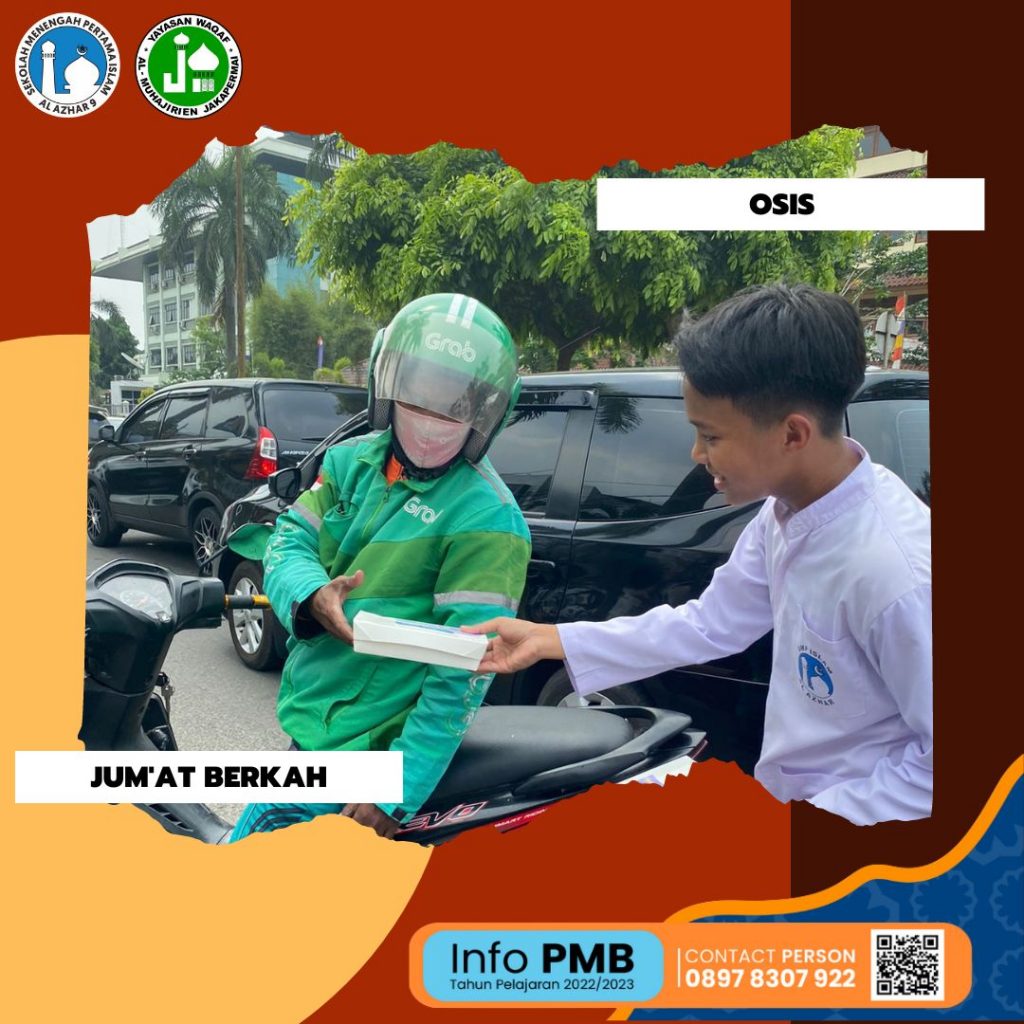 Program Jum’at Berkah dari OSIS dan MPK. Berbagi makanan untuk meraih berkah. Dilaksanakan tiap pekan 2 dan 4 berupa nasi box senilai Rp. 12.000/box ke lingkungan sekolah. Bagi yang ingin juga meraih keberkahan Jum’at, silakan transfer dana ke GoPay 087831075087 a.n Tania. Terima kasih