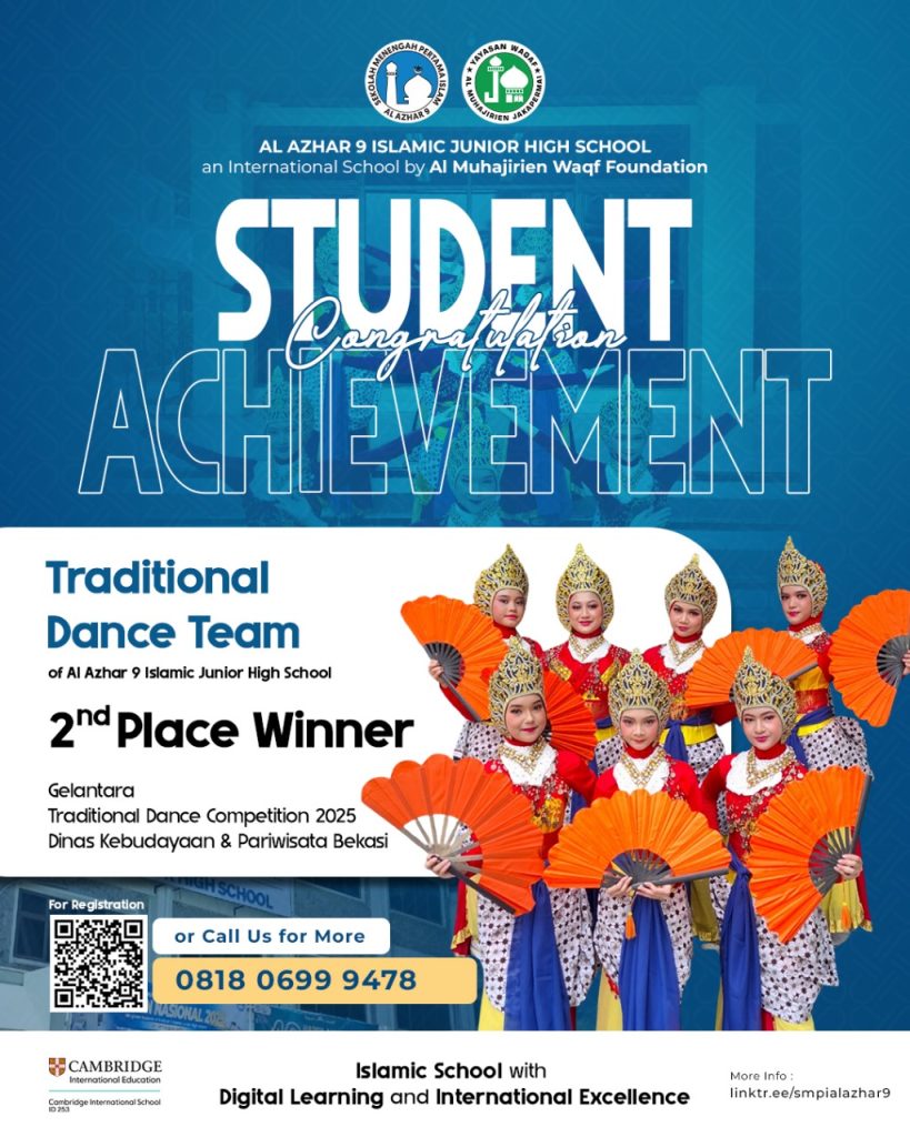 Congratulations to the dance team of SMP Islam Al Azhar 9 Bekasi (Team A) for winning 2nd Place in the GELANTARA 2025 Dance Competition, in collaboration with the Bekasi Department of Culture and Tourism.